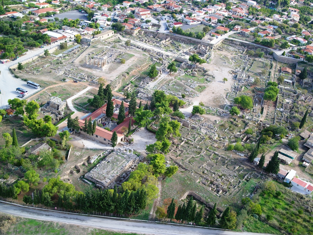 Η θέση της αρχαίας Κορίνθου κατοικήθηκε ήδη από τα νεολιθικά χρόνια (6500-3250 π.Χ.), ενώ δείγματα συνεχούς και εκτενούς κατοίκησης απαντούν στην περιοχή σε όλη τη διάρκεια της εποχής του Χαλκού, καθώς και στα γεωμετρικά χρόνια. Η μεγάλη παραγωγή αγροτικών προϊόντων βοήθησε την Κόρινθο να αναπτύξει έντονη εμπορική δραστηριότητα, κυρίως προς τη δυτική Μεσόγειο, ενώ τον 8ο αιώνα π.Χ. ίδρυσε αποικίες με σημαντικό ρόλο στην ιστορία του αρχαίου μεσογειακού κόσμου. Η μεγάλη ακμή της πόλης τοποθετείται στα αρχαϊκά χρόνια, ωστόσο λόγω της εμπορικής ανόδου της Αθήνας από τα τέλη του 6ου αιώνα π.Χ., η δυναμική παρουσία των Κορινθίων στο εμπόριο εξασθένησε. Νέα οικονομική ανάπτυξη σημειώθηκε στη διάρκεια των ελληνιστικών χρόνων, οπότε και ανεγέρθηκαν εκ νέου δημόσια κτήρια. Το διάστημα από το 44 π.Χ. μέχρι και τα χρόνια του Οκταβιανού Αυγούστου, η πόλη εποικίστηκε από Έλληνες, Ρωμαίους και απελεύθερους και στη διάρκεια των χρόνων που ακολούθησαν σχεδιάστηκε πολεοδομικά εκ νέου, ανοικοδομήθηκε και γνώρισε μεγάλη καλλιτεχνική ευημερία. Ωστόσο, από τον 3ο αιώνα μ.Χ. η Κόρινθος έχασε σταδιακά την αίγλη της, παρά το γεγονός ότι η εμπλοκή της στο ιστορικό γίγνεσθαι συνεχίστηκε έντονα καθόλη τη διάρκεια των αιώνων που ακολούθησαν.